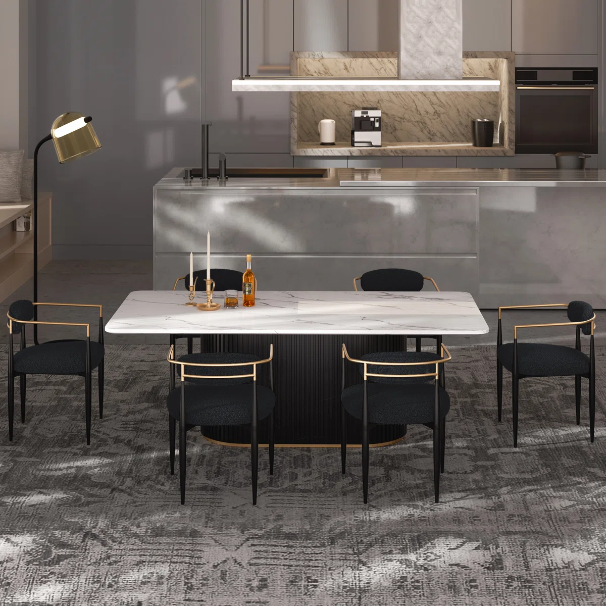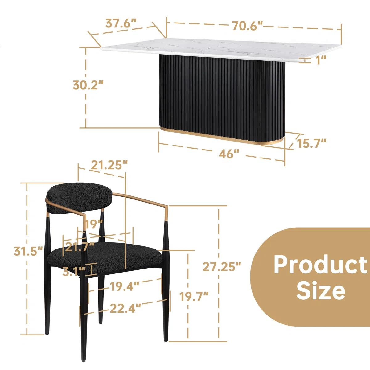 - Modern Elegance in Design: This refined dining set includes a marble-look table and six Boucle chairs, offering a harmonious blend of contemporary design and timeless elegance to elevate any dining or meeting space.